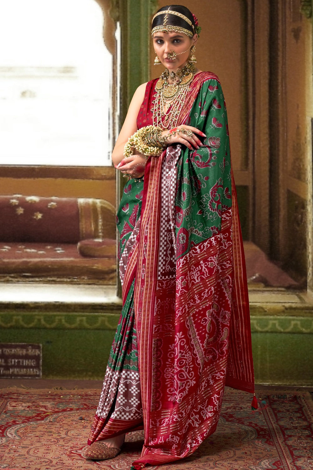 Hunter Green Tissue Linen Saree