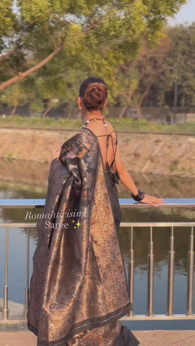 Coral Black Banarasi Soft Silk Saree