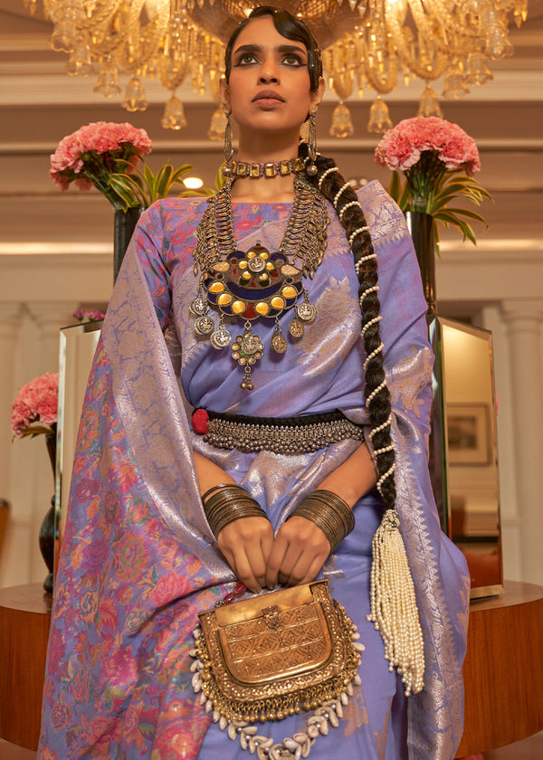 Santas Grey Woven Banarasi Satin Soft Silk Saree