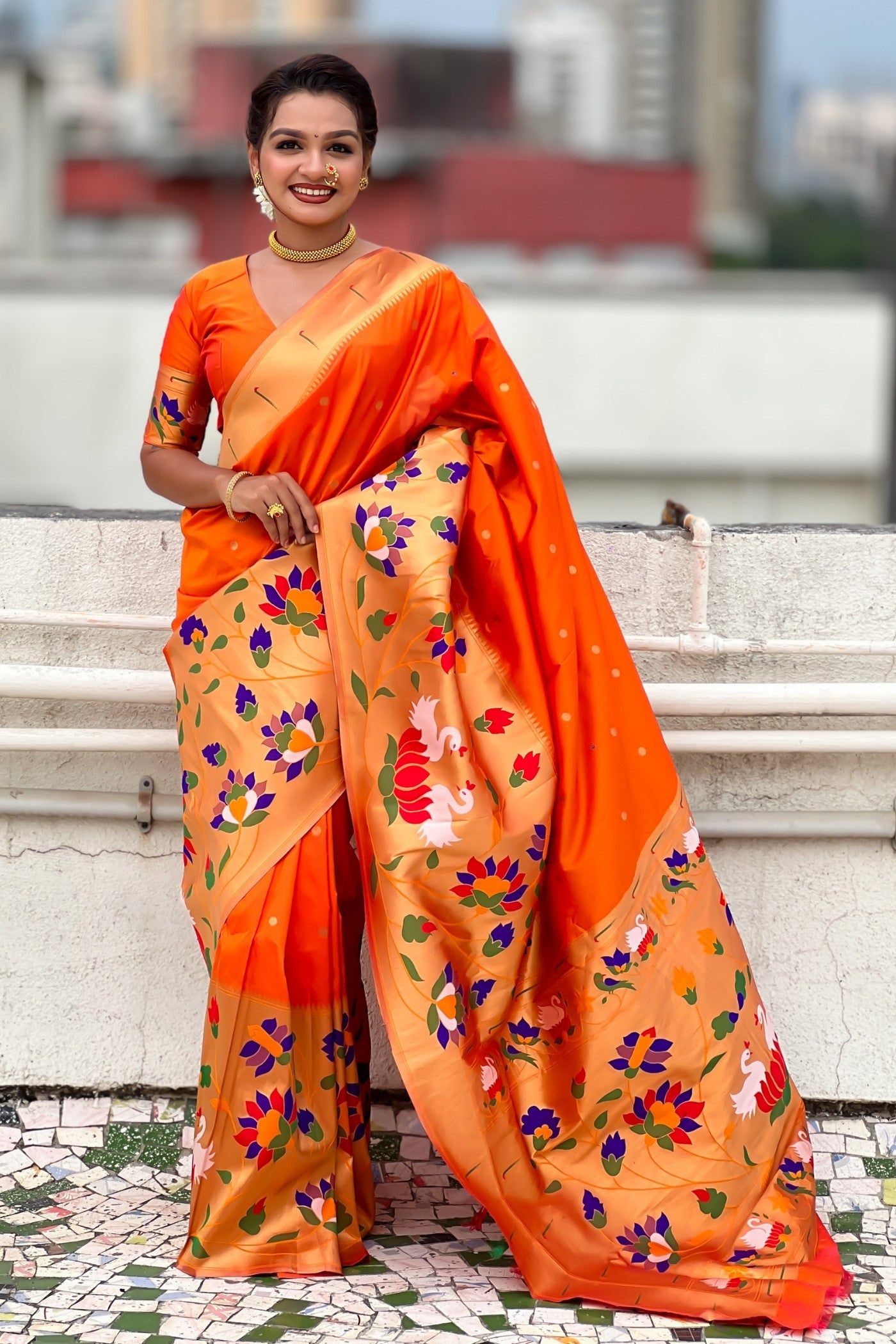 Orange Paithani Bridal Saree: