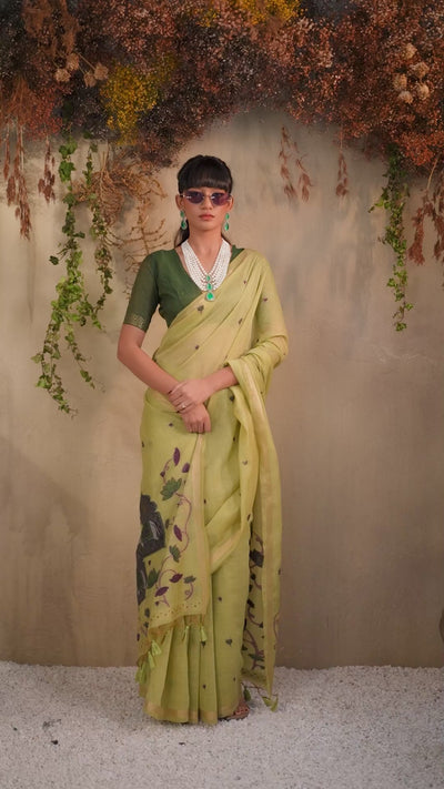Fern Green Handloom Cotton Saree